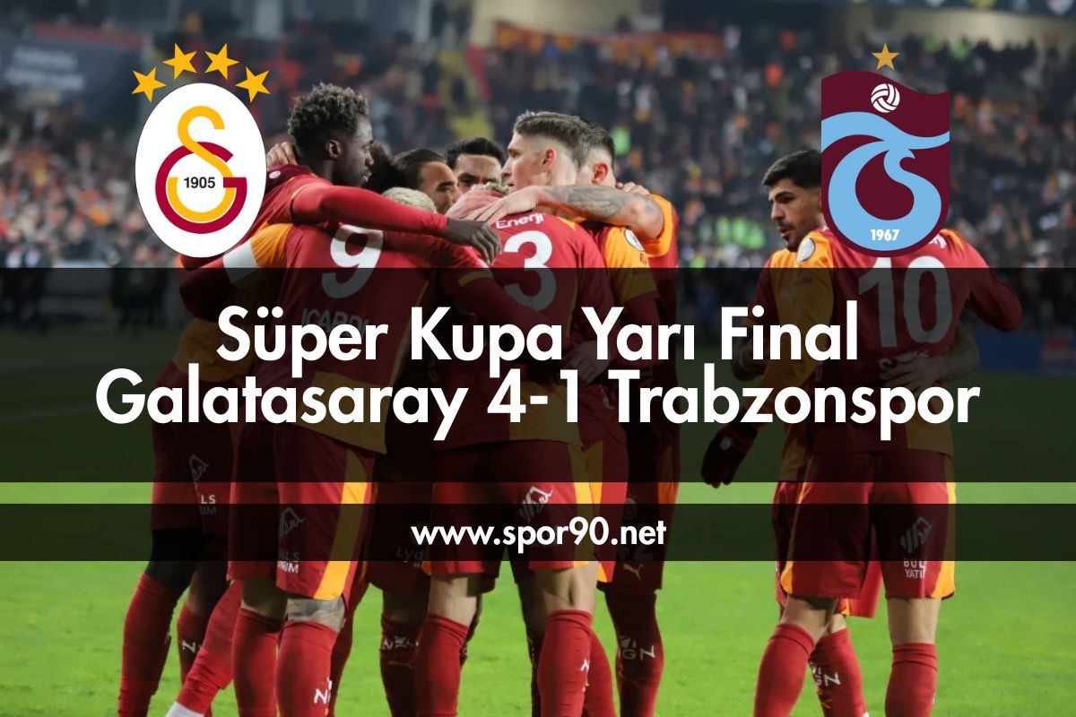 05 Ocak 2026 tarihinde oynanan Galatasaray – Trabzonspor Süper Kupa Yarı Finali, skorun ötesinde bir oyun üstünlüğünün, doğru planlamanın ve saha içi disiplinin ürünü olarak tarihe geçti. 4-1’lik galibiyet, Galatasaray’ın sadece finale yükseldiğini değil, aynı zamanda Türk futbolunda hâlâ oyunun merkezinde olduğunu da gösterdi. Sitemiz spor90.net’ten Galatasaray Transfer haberlerini de almak için siteyi favorilerinize eklemeyi unutmayın.